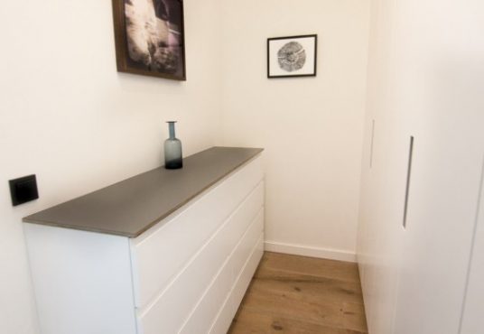 Das Hauptschlafzimmer ist mit einer separaten Ankleide und einem Bad en-suite ausgestattet. Die Einbauten in der Ankleide sind ebenfalls Bestandteil der Wohnung. Im Tageslichtbad finden Sie eine Badewanne und eine Regendusche vor.