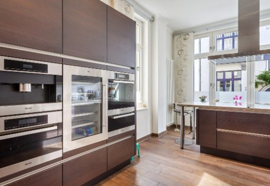 einer unerwarteten Ruhe inmitten der Stadt. Die hochwertige Einbauküche ist nicht nur