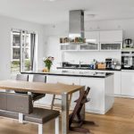 Die offene Küche mit Kochinsel integriert sich wunderbar in den großzügigen Raum