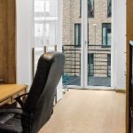 von dem Sie einen tollen Blick auf den Balkon und die begrünten Gärten der Nachbarschaft genießen.