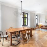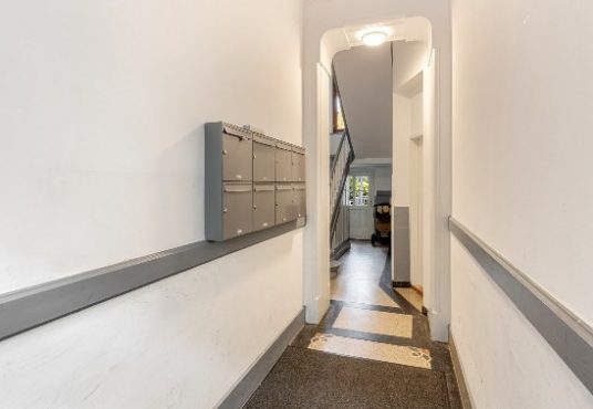 Zwei Schlafzimmer, moderne Bäder und ein Hauswirtschaftsraum werden perfekt ergänzt durch den großzügigen Wohnbereich. Die hohen Decken und das Fischgrätenparkett versetzen Sie in eine andere Zeit zurück und verlocken durch moderne Standards.